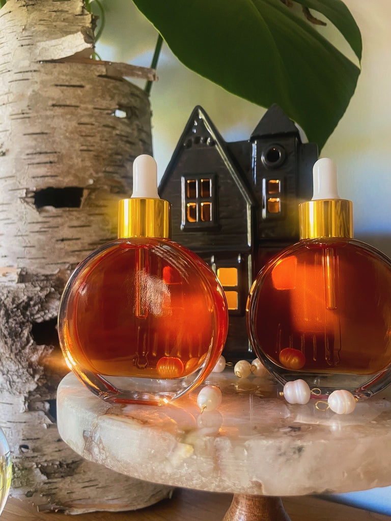 We’re bringing that fire energy into the dark days of Samhain with this healing and protective flower-infused oil that can be used in ritual to consecrate tools, candles, and spellcrafters OR as a face and body oil for soothing care during dry, cold months.
